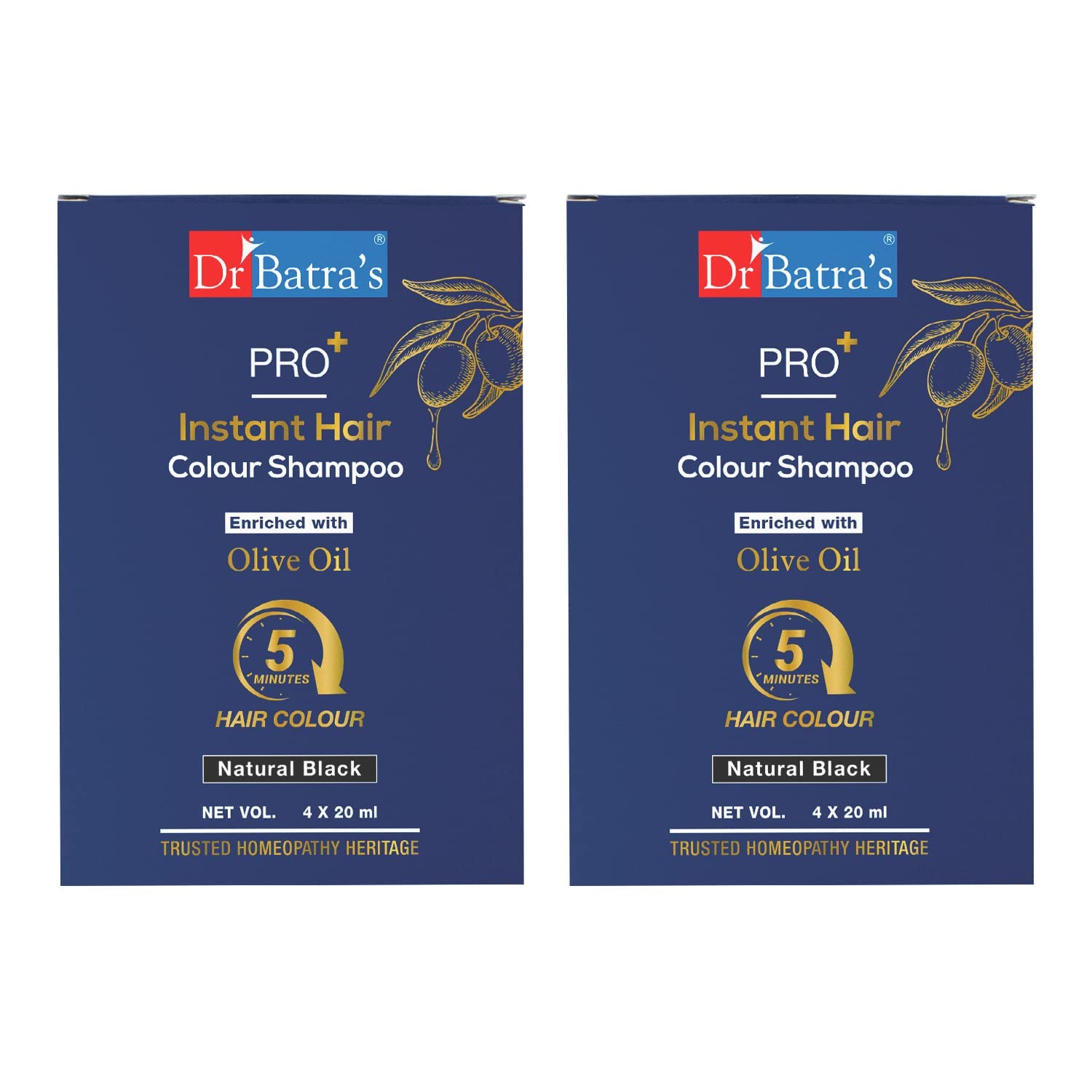 DR BATRA'S PRO+ INSTANT HAIR COLOUR SHAMPOO NATURAL BLACK Suitable for Both Men and Women (Pack of 2)