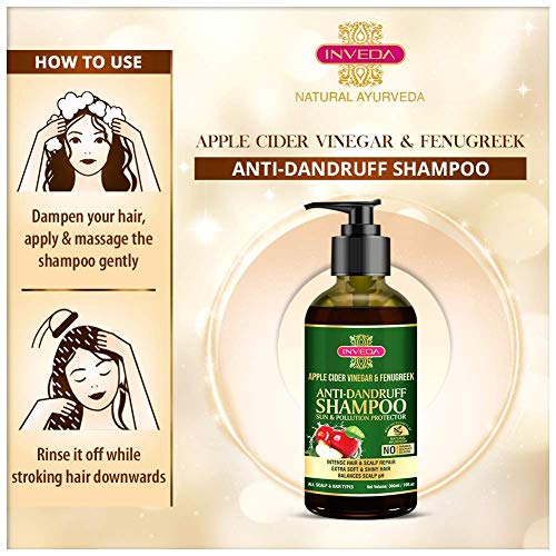 Inveda apple cider vinegar & fenugreek anti-dandruff shampoo is formulated with Ayurveda ingredients & natural extracts to prevent dandruff from damaging scalp & hair.