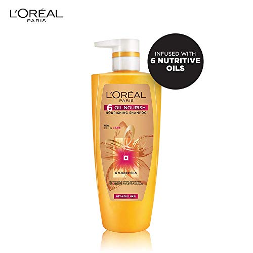The 6 Oil Nourish Shampoo has been created to provide complete nourishment to your hair from root to tip with 6 Micro Oils making it soft shiny thick strong smooth and manageable.Science meets tradition with the infusion of 6 unique oils. The L'Oreal Paris 6 Oil Nourish Shampoo has been specially created by the L'Or al Research & Innovation Centre in India. It penetrates deep into the scalp giving it utmost nourishment and care that is suitable for all hair types.This shampoo comes with 6 Micro Oils to make your hair soft strong thick smooth shiny and manageable. Suitable for all hair types this shampoo penetrates into your scalp to make your hair beautiful.The 6 oil nourish shampoo has been created to provide complete nourishment to your hair from root to tip with 6 micro oils making it soft shiny thick strong smooth and manageable Science meets tradition with the infusion of 6 unique oils Massage gently into wet scalp/hair lather and rinse for soft nourished and healthy hair.
