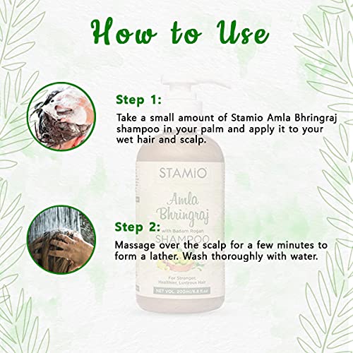 STAMIO Amla Bhringraj Shampoo for Healthy Hair and Scalp Care | Enriched with Badam Rogan Reetha Shikakai Neem Tulsi | Natural Cleanser | Men & Women | 200ml
