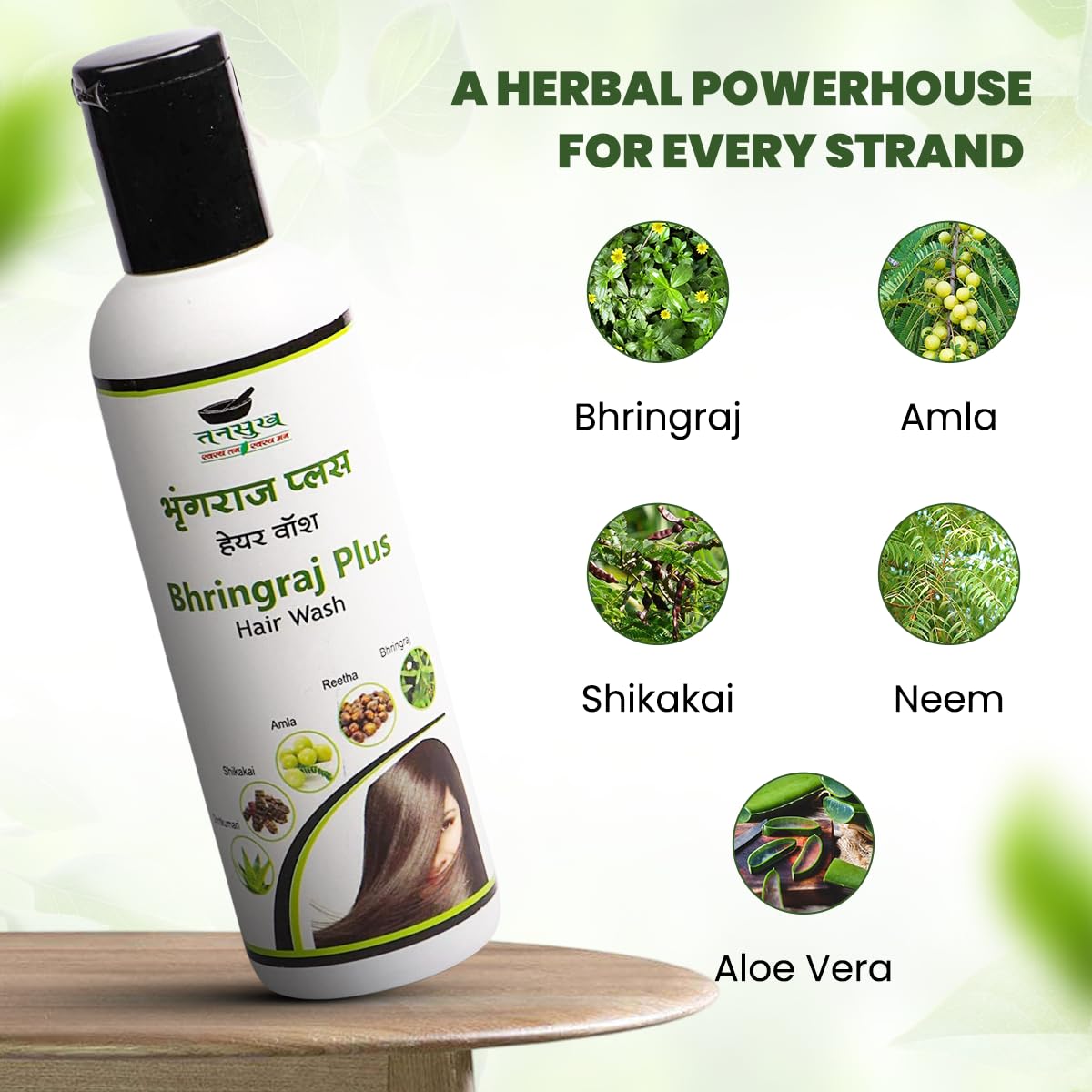 Tansukh Bhringraj Plus Combo Pack 200ml Shampoo + 100ml Oil | For Hair Growth Anti Hair Fall & Dandruff | Ayurvedic Herbal Solution