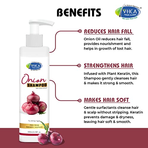 VHCA Onion Shampoo With onion Extract - Suitable For Men Women - For Dry Frizzy Normal Hair - Pack Of 1 200 ml