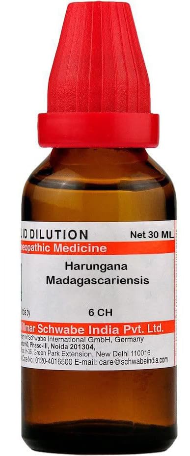 Dr Willmar Schwabe India Harungana Madagascariensis Dilution is useful in cases of skin affections especially arising from impurity of the blood. Cough with blood in sputum. Useful in cases of tape worms infantile colic pain in abdomen after jaundice.