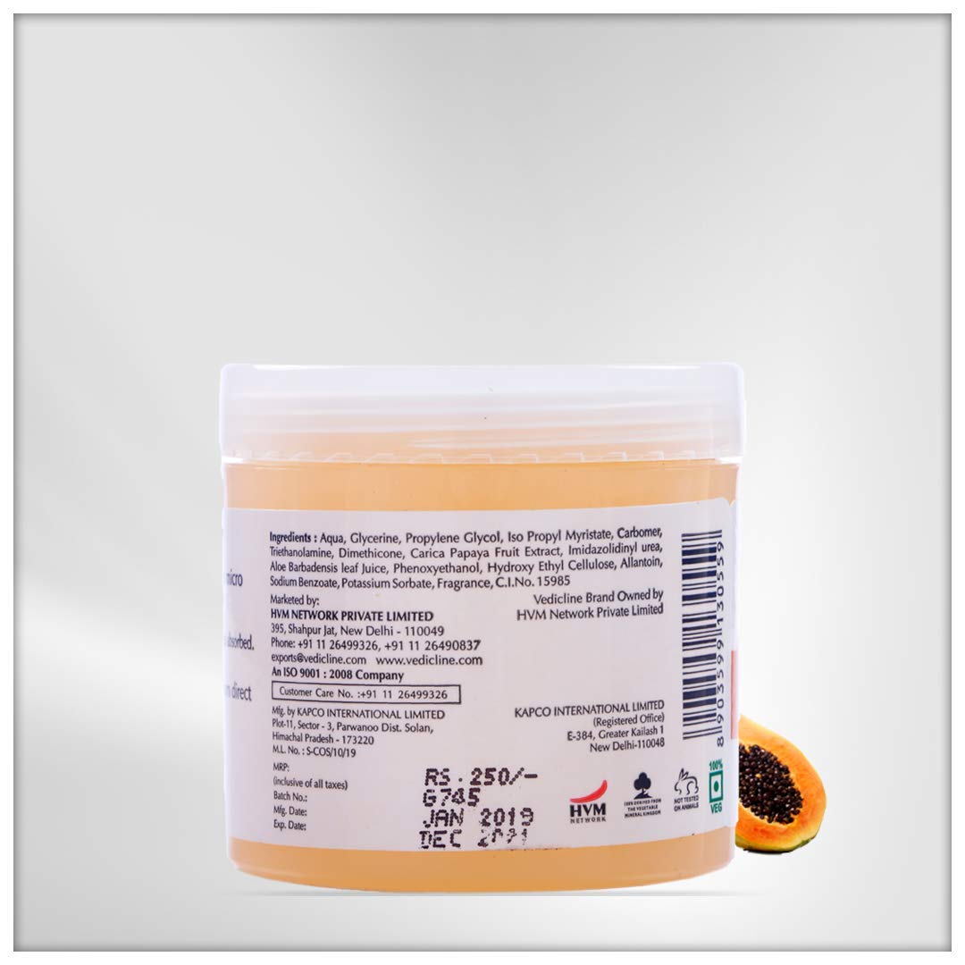 • Vedicline Papaya Gel offers the skin a burst of freshness by promoting fairness o pigmentation skin scars & blemishes for more clear skin.