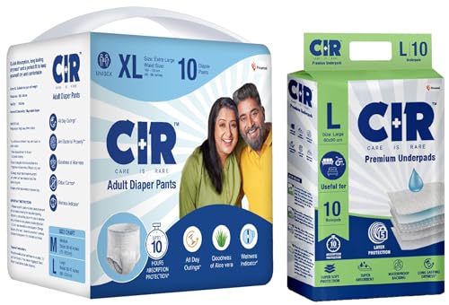 CIR Adult Diaper Pants, Extra-Large (100-150cm I 40" - 59") I 10 Units & CIR Premium Underpads, Large (90x60cm) I 10 hrs Absorption Protection I 10 Unitsx Pack of 1