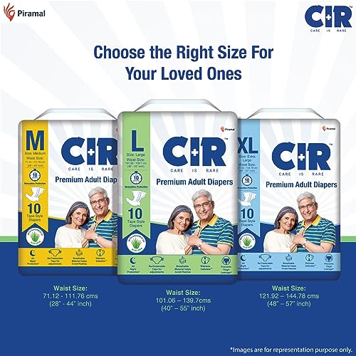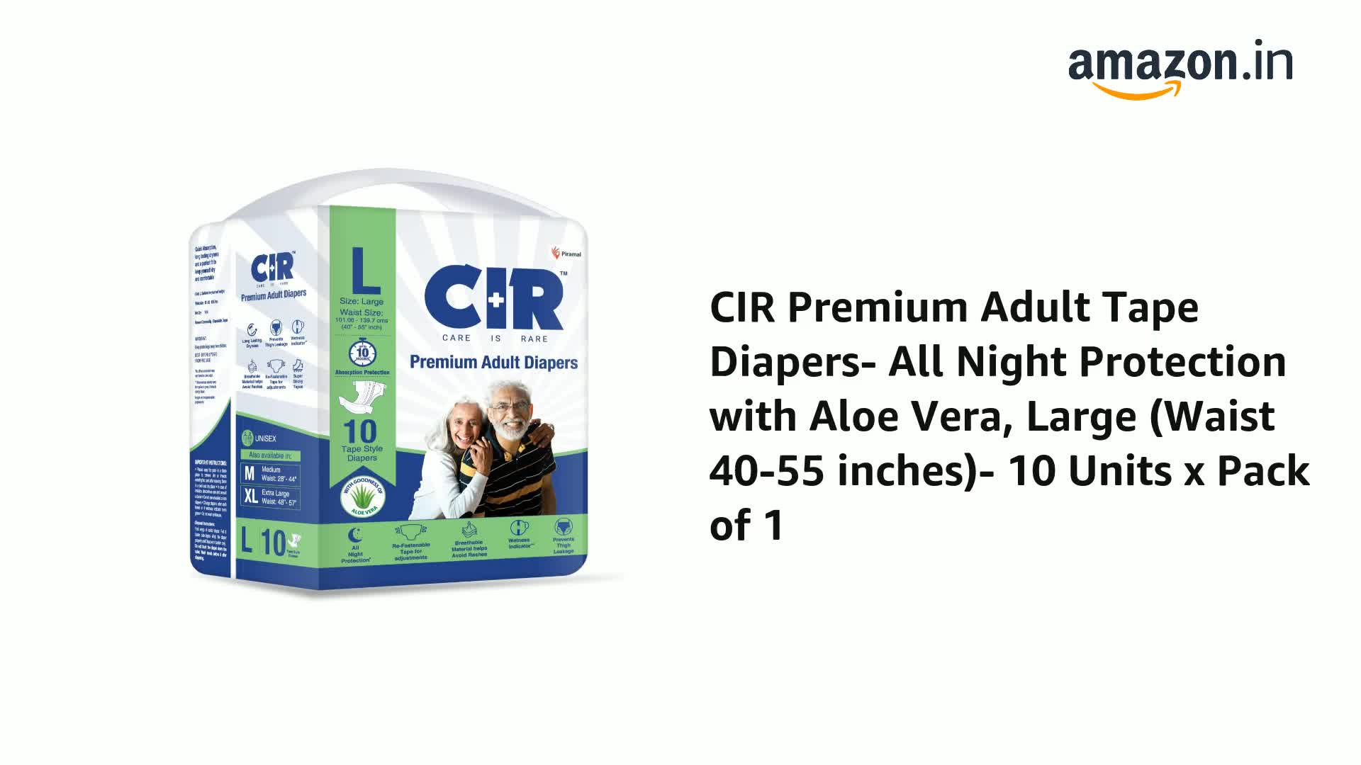CIR Unisex Premium Adult Diaper-Tape Style All Night Protection With Aloe Vera Large(L) Size Waist(101-140Cm 40"-55") 10 Units