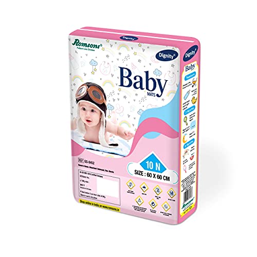 Dignity Disposable Baby Changing Mats, 60 X 60 cm, 10 pcs/Pack (Pack of 6) 60 Pcs