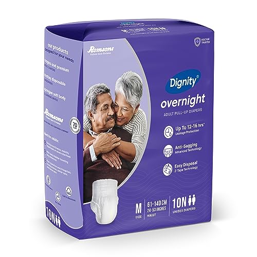 Dignity Overnight Pull Up Adult Diapers Pant Style - 10 Count (Medium) with Soft Elastic and Extra Absorbent Core, Waist Size 24" - 53", 10 Pcs/Pack (Pack of 1)