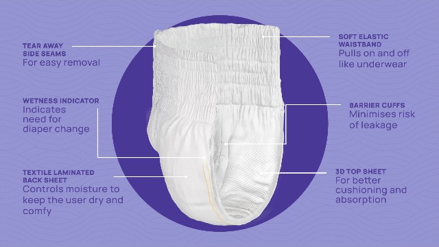 • Easy to wear and take off our adult pull-ups come with a Stretchable Elastic Waistband.