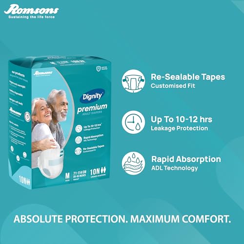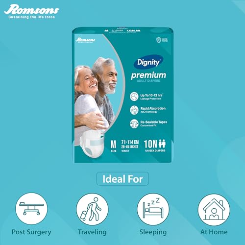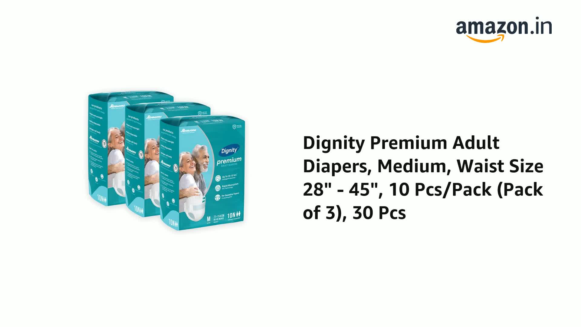 • Dignity Premium Adult Diapers are designed for involuntary urination or defecation in both men & women. Premium provides Protection for up to 10-12 hours.