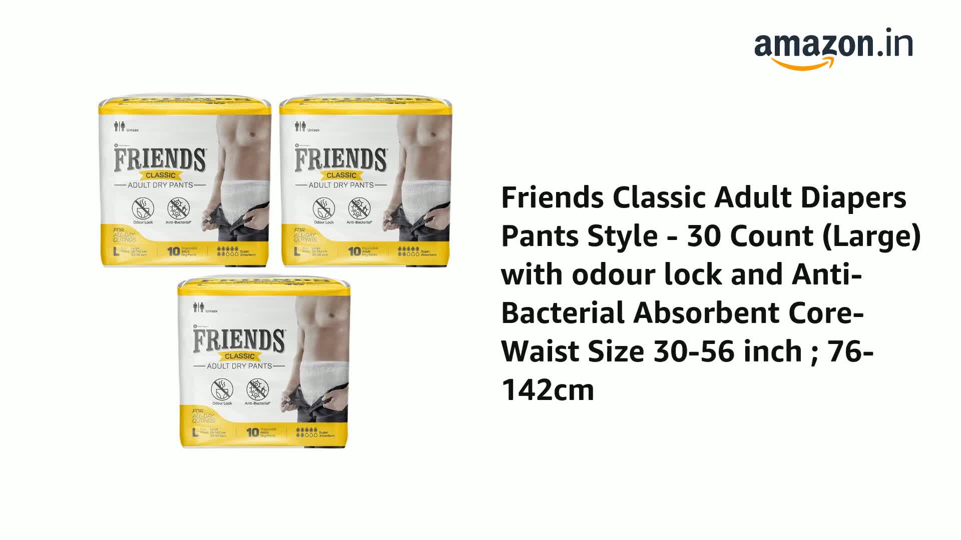 • Friends Adult Diapers large size pant style with 8 hours of protection are also available in sizes M XL and XXL.