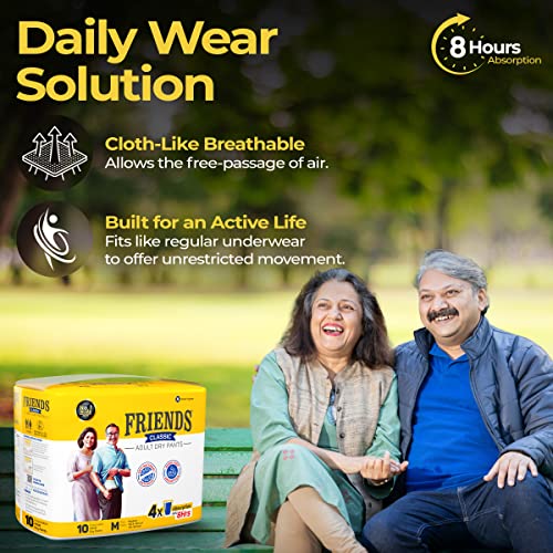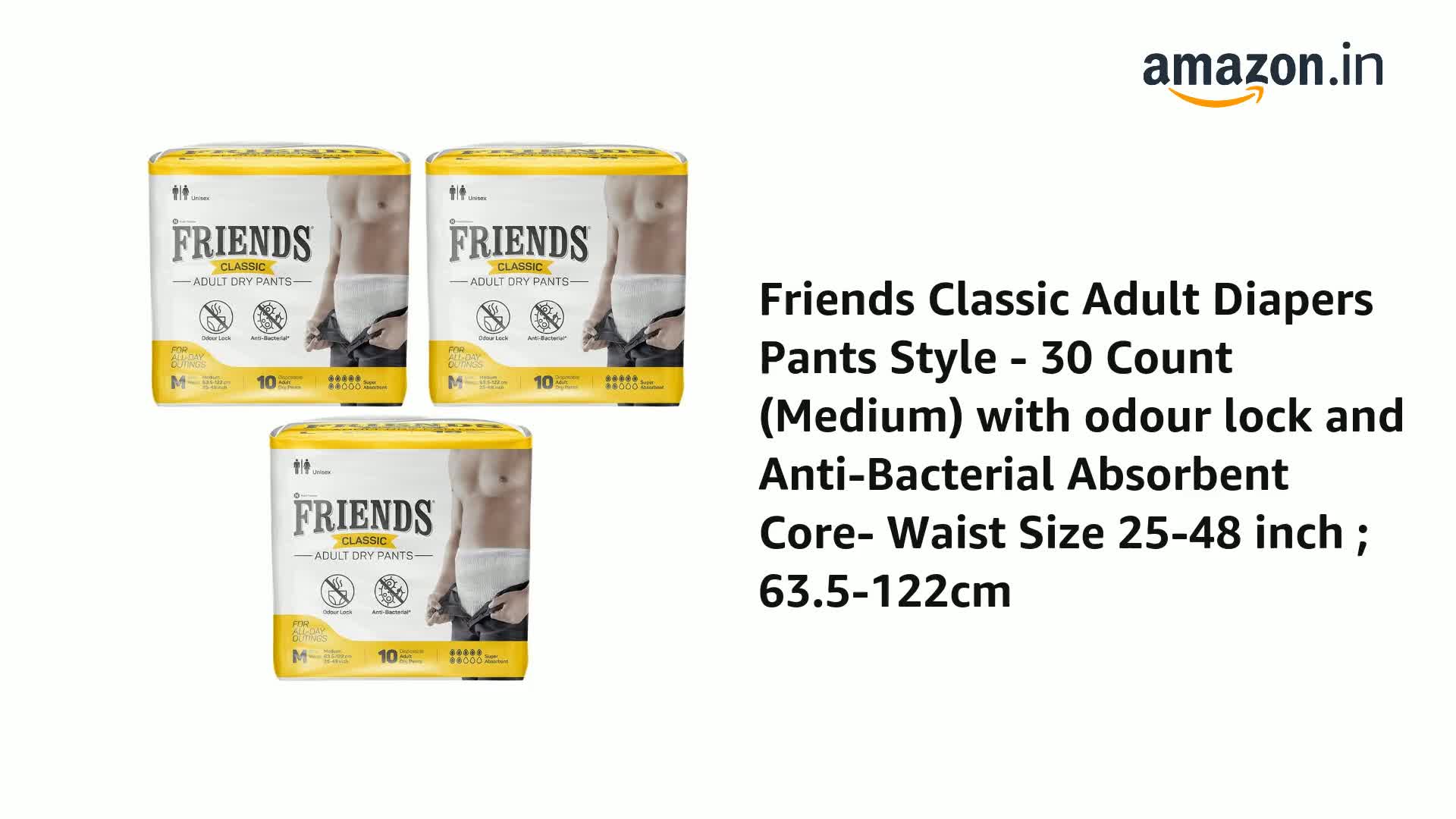 Friends Classic Adult Diapers Pants Style - 30 Count (Medium) with odour lock, Unisex, Leakproof, Elastic Waist and Anti-Bacterial Absorbent Core - Waist Size 25-48 inch; 63.5-122 cm