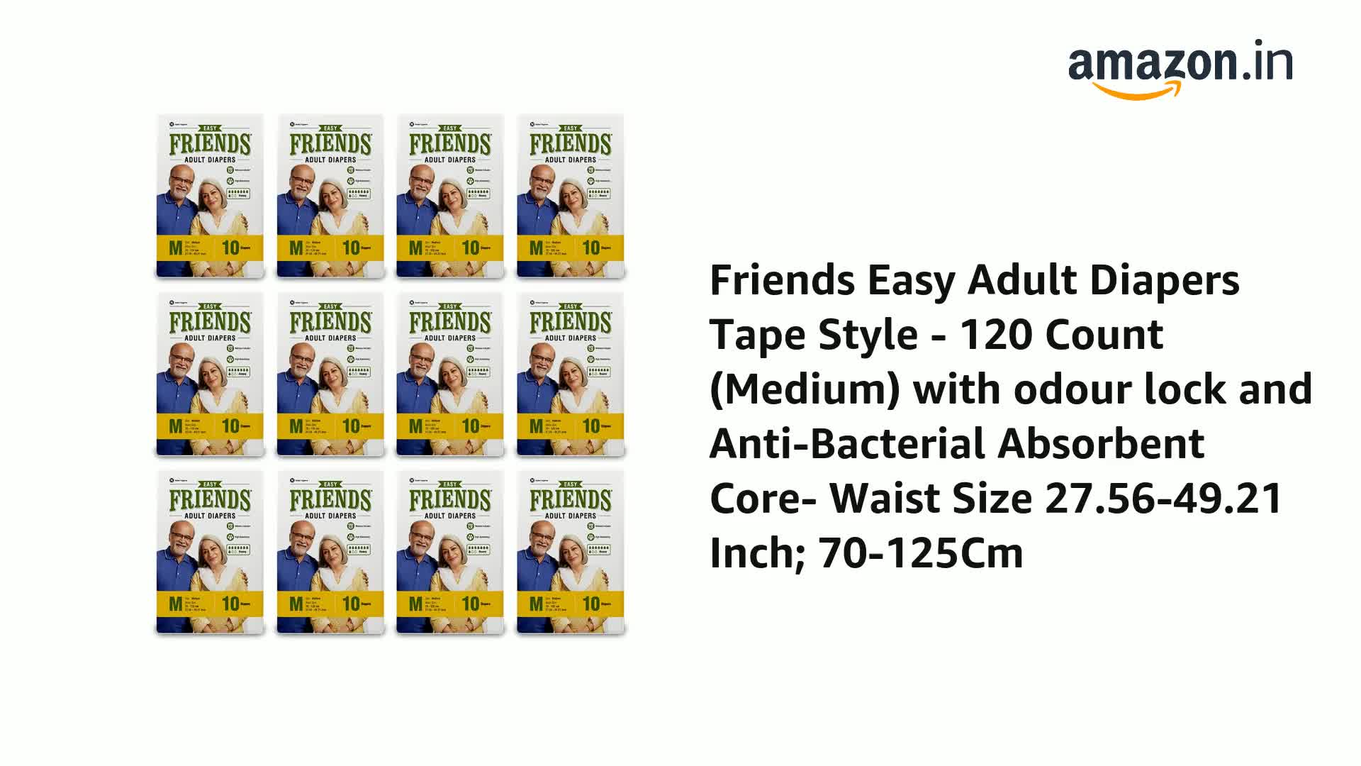 Friends Easy Adult Diapers Tape Style - 120 Count (Medium) with odour lock, Unisex, Leakproof, Wetness Indicator and Anti-Bacterial Absorbent Core- Waist Size 28.35-51.18 inch; 72-130cm