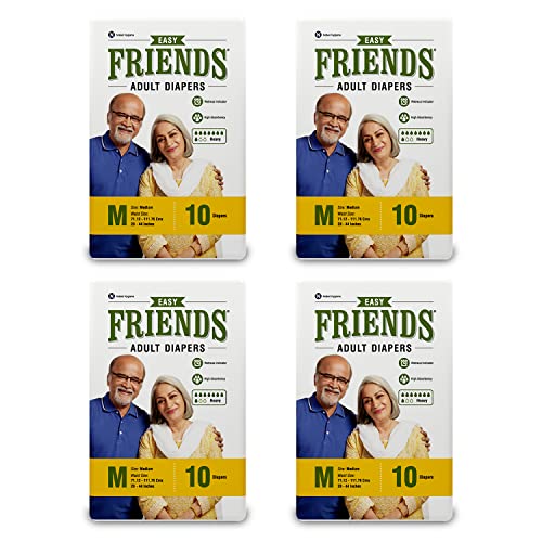 Friends Easy Adult Diapers Tape Style - 40 Count (Medium) with odour lock, Unisex, Leakproof, Wetness Indicator and Anti-Bacterial Absorbent Core- Waist Size 28.35-51.18 inch; 72-130cm
