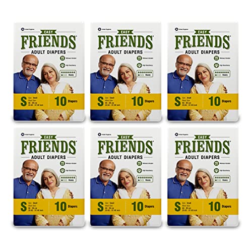 Friends Easy Adult Diapers Tape Style - 60 Count (Small) with odour lock, Unisex, Leakproof, Wetness Indicator and Anti-Bacterial Absorbent Core- Waist Size 22.44-39.37 inch; 57-100 cm