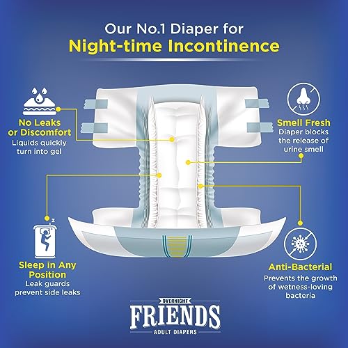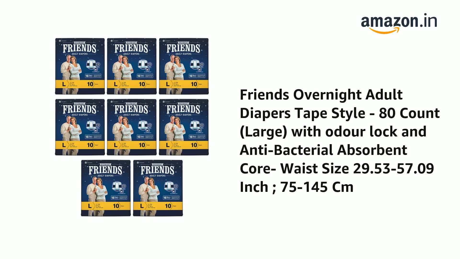 Friends Overnight Adult Diapers Tape Style - 80 Count (Large) with odour lock, Unisex, Leakproof and Anti-Bacterial Absorbent Core - Waist Size 32.68-59.84 inch; 83-152 cm