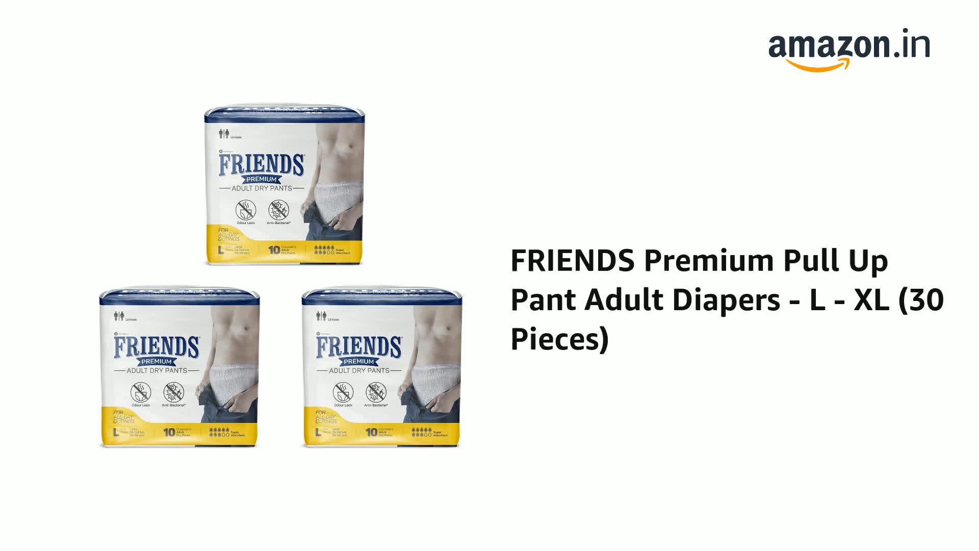 Friends Premium Adult Diapers Pants Style - 30 Count (Large) with odour lock, Unisex, Leakproof, Elastic Waist and Anti-Bacterial Absorbent Core - Waist Size 30-56 inch; 76-142 cm