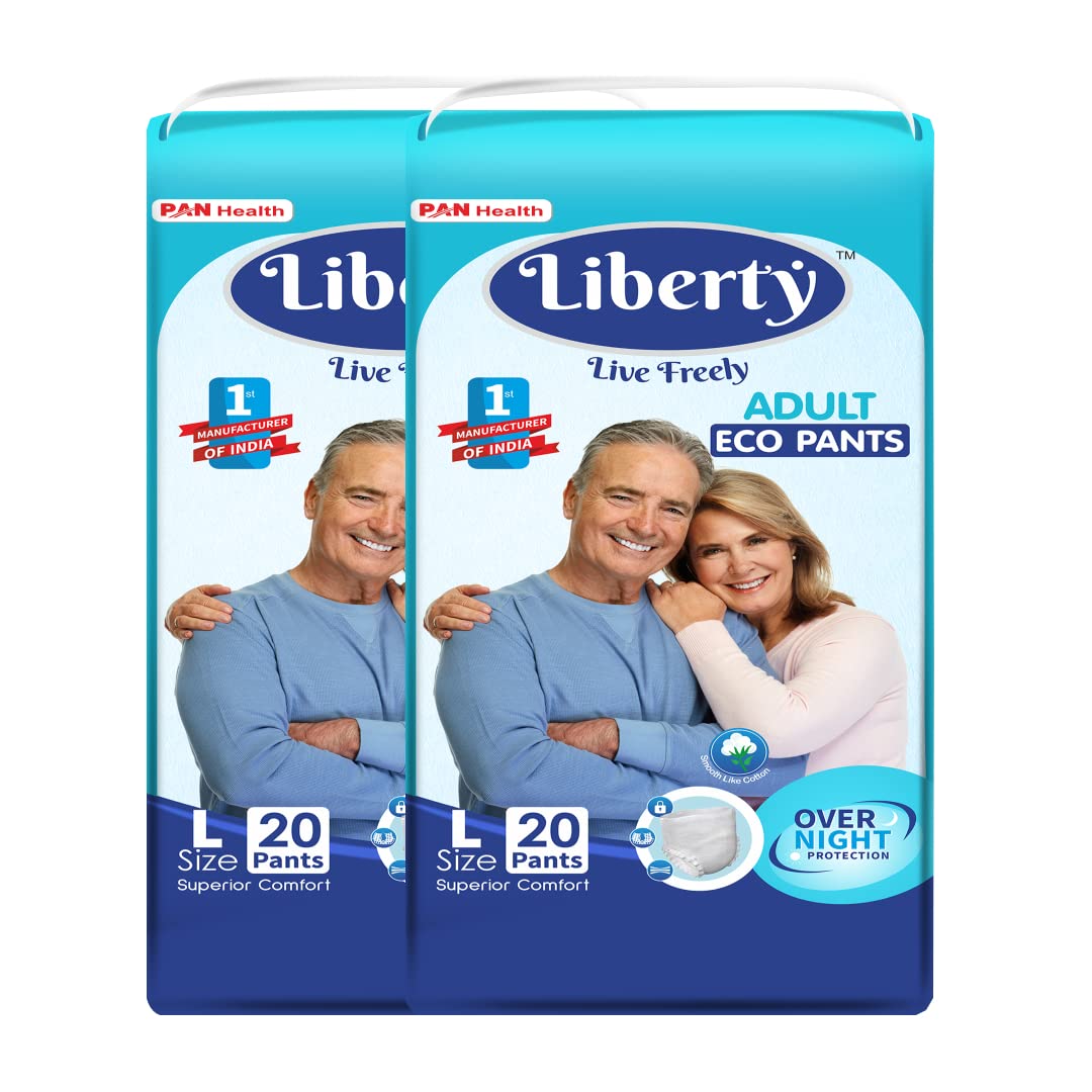 Liberty Eco Adult Diaper Pants, Large (L) 40 Count, Waist Size (75-140cm | 30-55 inches), Unisex, High Absorbency, Leak Proof, Overnight Protection, Pack of 2, 20 count/pack