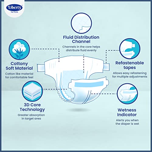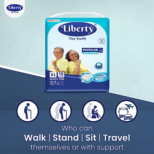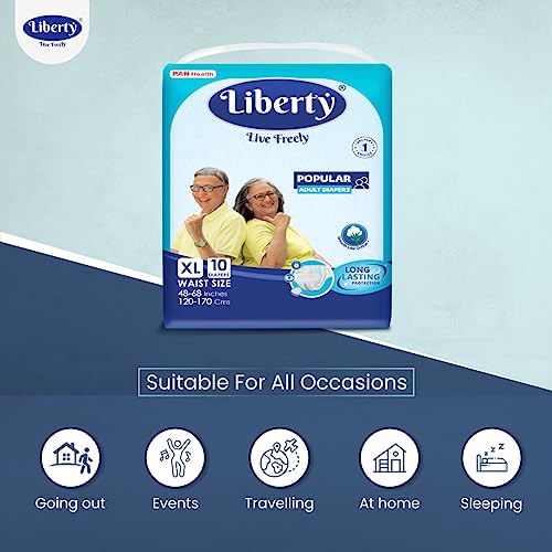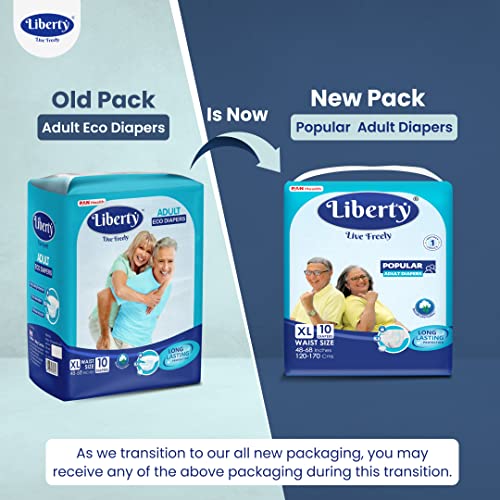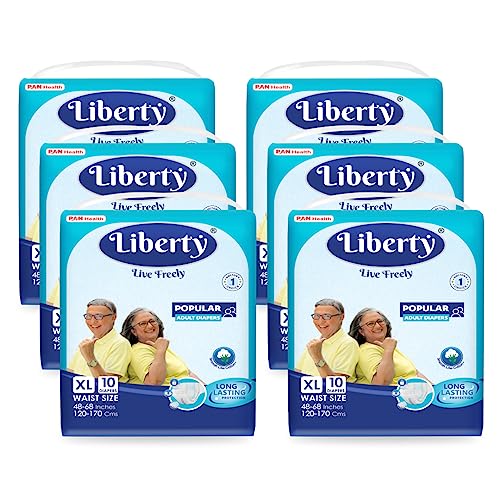 Liberty Popular Adult Diapers, Tape Style, Extra Large (XL) Size, 60 Count, Waist Size (120-170cm | 48-68 inches), Unisex, High Absorbency, Leak Proof, Wetness Indicator, Pack of 6, 10 Count/Pack