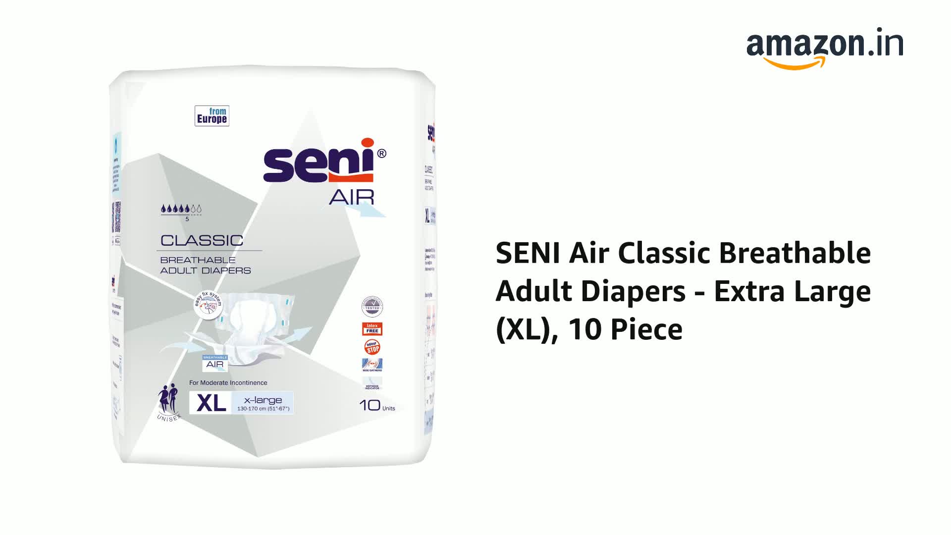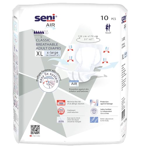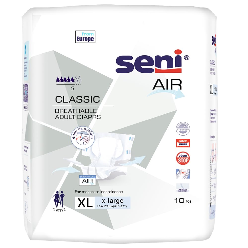 SENI Air Classic Breathable Adult Diapers - Extra Large (XL), 10 Piece