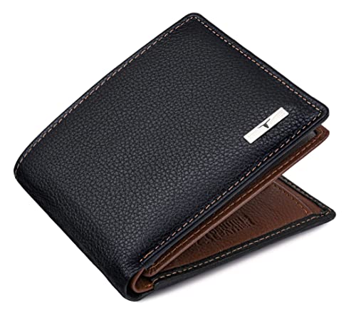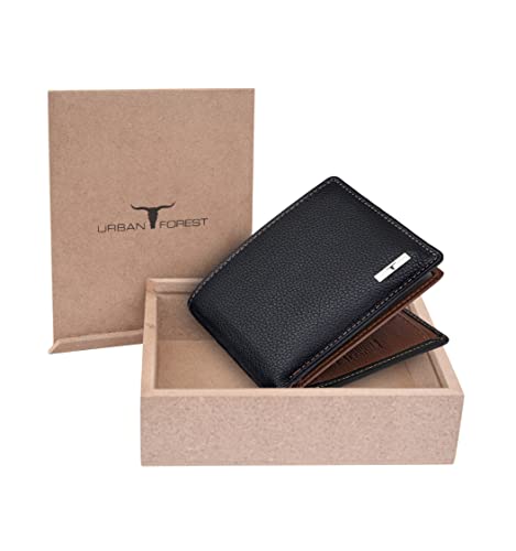 Urban Forest Kyle Leather Wallet for Men, Black/Redwood in Wooden Box, Contemporary