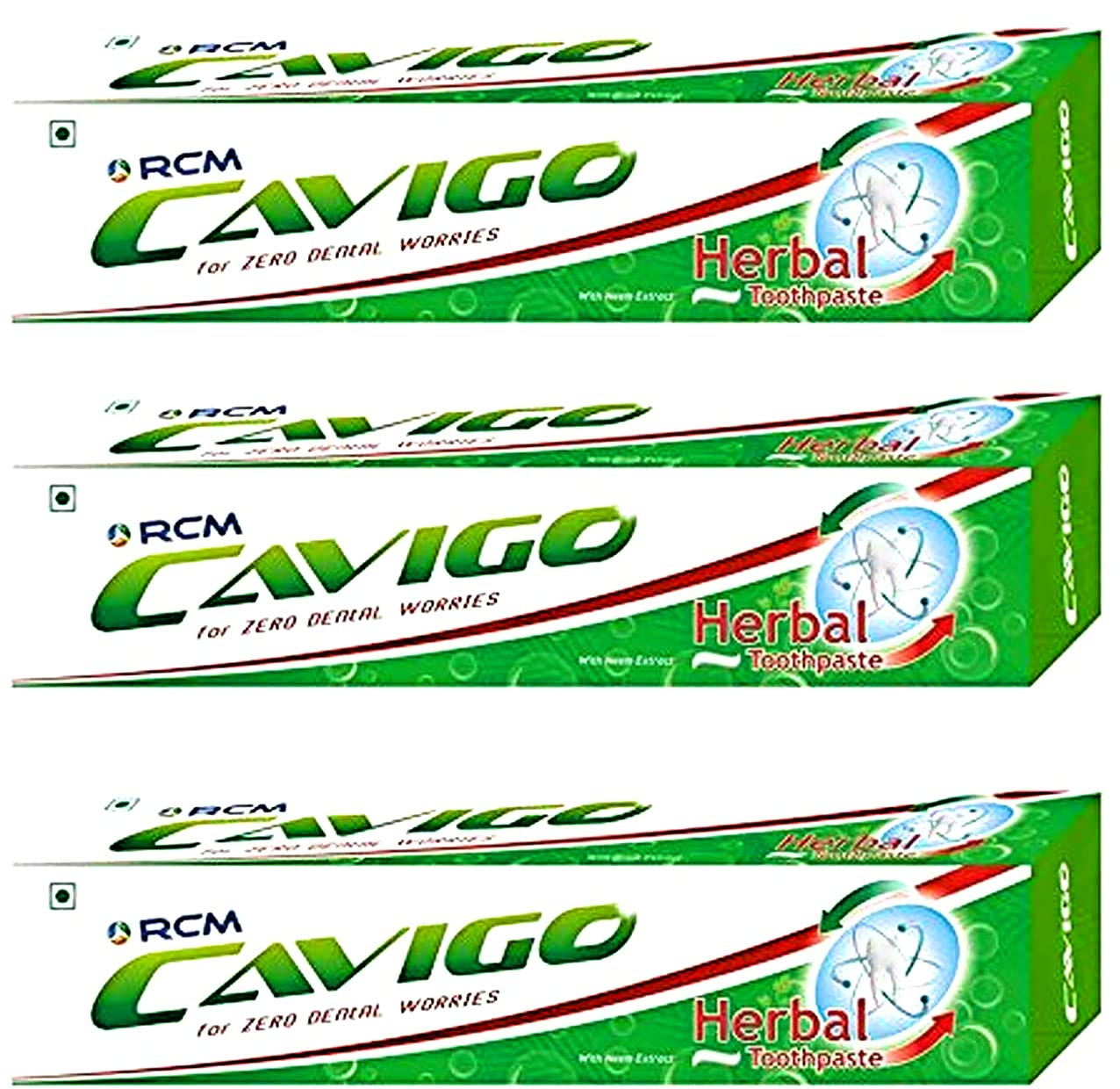 Cavigo Herbal Non-flouridated Toothpaste with neem & clove extract. No Gelatine No Bone ash. Family Pack (100g x 3)