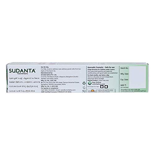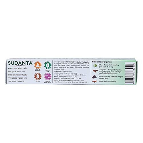 Size:50 g (Pack of 1)Sri Sri Tattva's Sudanta Toothpaste gives you complete oral care. One of the biggest benefits of Sudanta is that is completely free from Fluoride! Recent studies have found that Fluoride causes tooth decay known as dental fluorosis and this is most common in children.