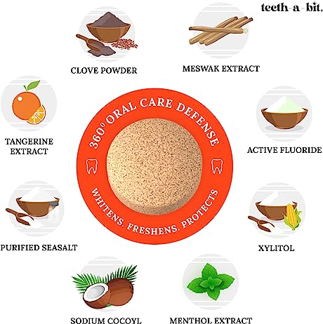 teeth-a-bit Multi-Protection Tangerine Mint Tooth Bits, SLS Free Plant Based Toothpaste Tablets (60 Count)
