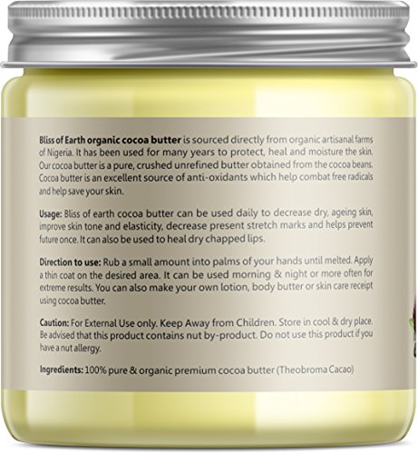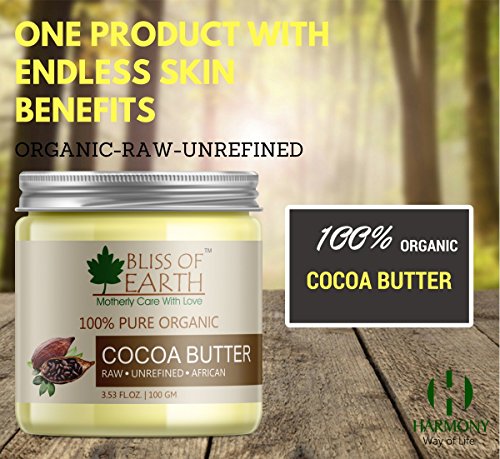 Bliss of Eartho 100% Pure Organic Raw Cocoa Butter | 200GM | Raw | Unrefined | African | Great For Face Skin Body Lips DIY products|