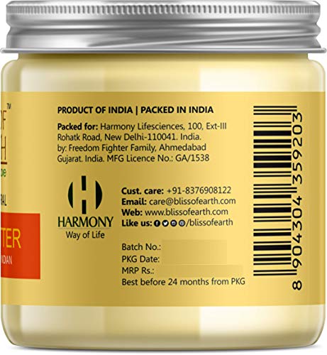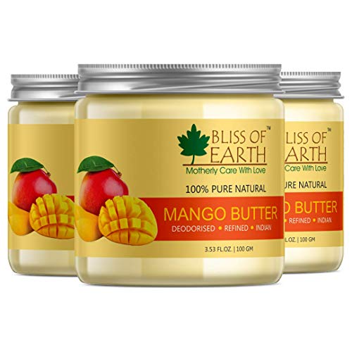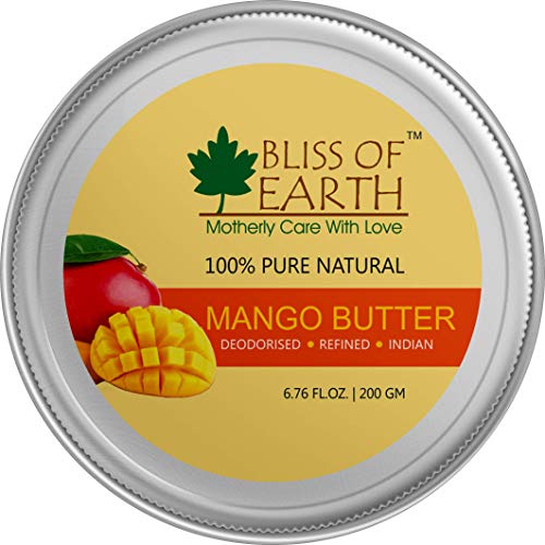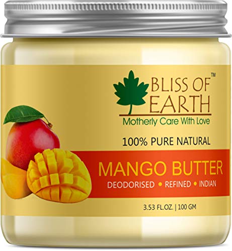 Why Deodorized? Raw mango butter has an extremely pungent smell which is unbearable and almost impossible to put up for use as a standalone product on your skin. Therefore we have to stripe off the smell and call it deodorized mango butter.Smoothsupple and oh-so-drool worthy a kiss of Mango Butter and the driest of skins perk up. Loaded with Vitamins A C and E in truckloads this wonderful elixir rightly makes it to the ingredients list of countless body butterssalves lip balms chap sticks and even hair mousses and hair butters.Not only does it quench skinothirst for deep as well as long lasting intense moisturization but also does so without raising the chances of having pimples break out. How? It ranks incredibly low on the comedogenic scale.Extracted from the de-shelled fruit kernels of the mango tree Bliss of Earthodeodorised Mango butter is a repository of nutrients particularly antioxidants.Higher the antioxidant content higher the degree of protection from free radicals. That spells a halt on premature skin ageing. In simple words If you fine lines or wrinkles are making a mark on your delicate under eye area hereoyour saviour. AdditionallyMango butter is loaded choc-a-bloc with palmitic acid arachidic acid linoleic acid stearic acid and oleic acid. All these make it a sterling intensive hydrator that not only rejuvenates dull stretchy and parched skin but also condition your crowning glory to the hilt!Bliss of EarthoDeodorised Mango Butter is here to sway you by your feet all thanks to its enchanting benefits that are just too good to turn a blind eye to! Up your skin and hair game.
