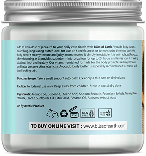 Bliss of Earth Rejuvenating Avocado Body Butter With Goodness of Shea Butter For Tired Looking Skin 200GM