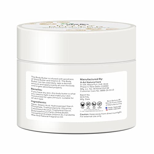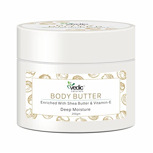 Vedic Naturals Body Butter Enriched With Shea Butter & Vitamin-E - 200gm | Deep Moisturizing For Dry Skin & All Day Moisture Lock | For All Skin Types & Healing Stretch Marks | 100% Organic