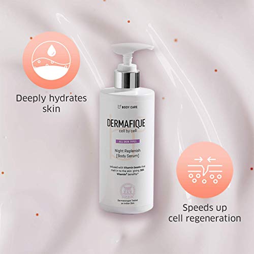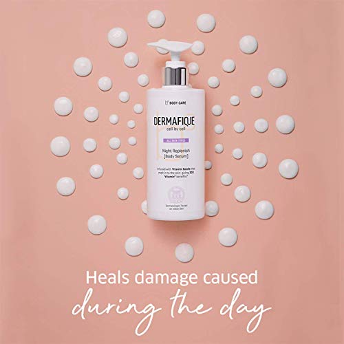 Dermafique Night Replenish Body Serum Body Lotion for All Skin Types Night Regeneration 30x Vitamin E Deeply hydrates and moisturizes Repairs Skin Cell Damage dermatologist tested (300 ml)