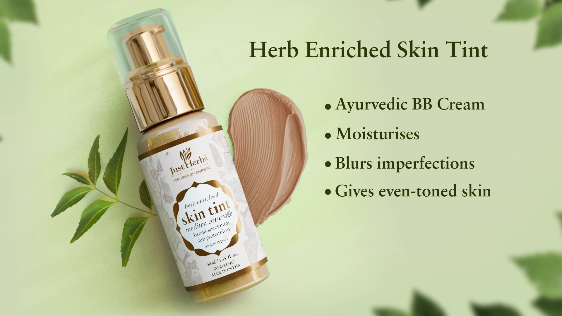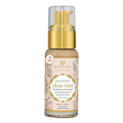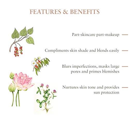 The herb enriched skin tint compliments your skin shade and blends in easily with the skin. It masks imperfections such as fine lines blemishes and pores on your skin and gives a flawless look. Also the skin tint moisturizes your skin and gives broad spectrum UV protection. This is a must-have product for daily use and you will always want to have a bottle in your hand-bag!