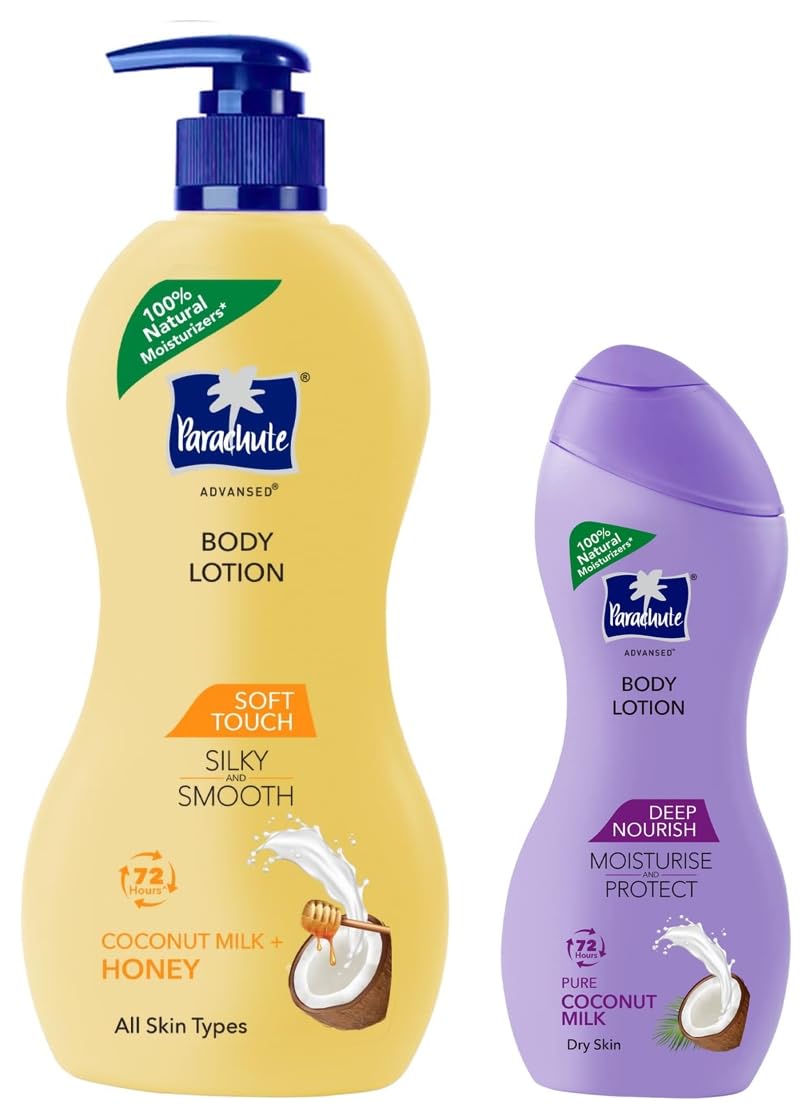 Parachute Advansed Soft Touch Body Lotion 400ml & Parachute Advansed Deep Nourish Body Lotion for Women & Men Dry Skin 250ml | Pure Coconut Milk 100% Natural 72h Moisturisation