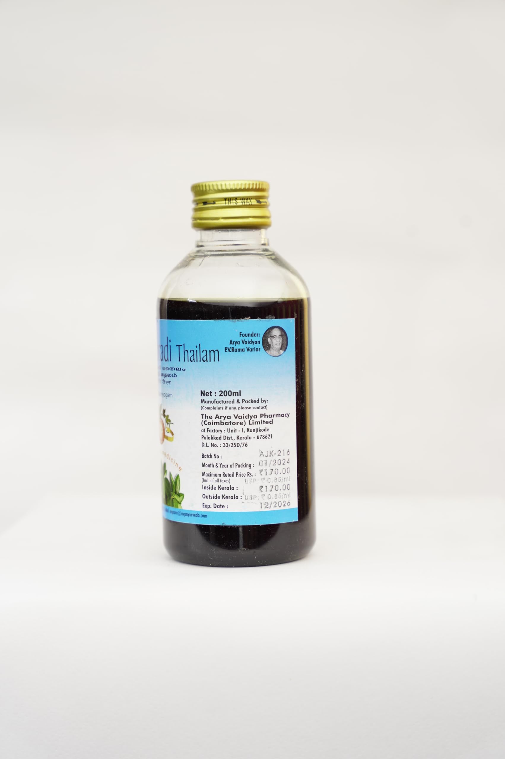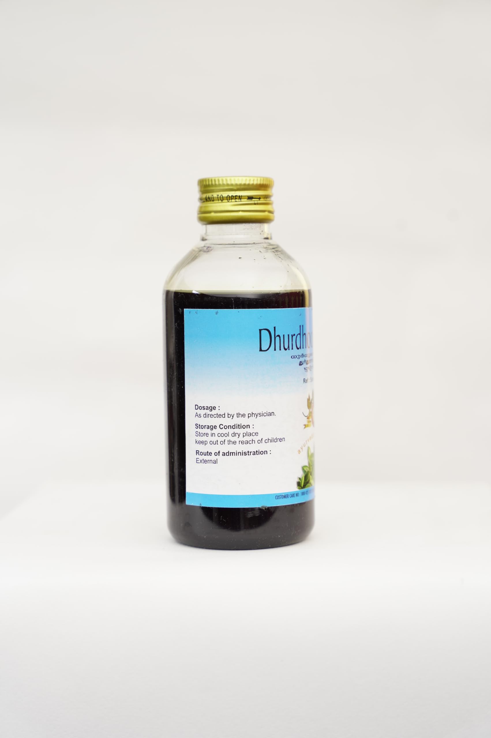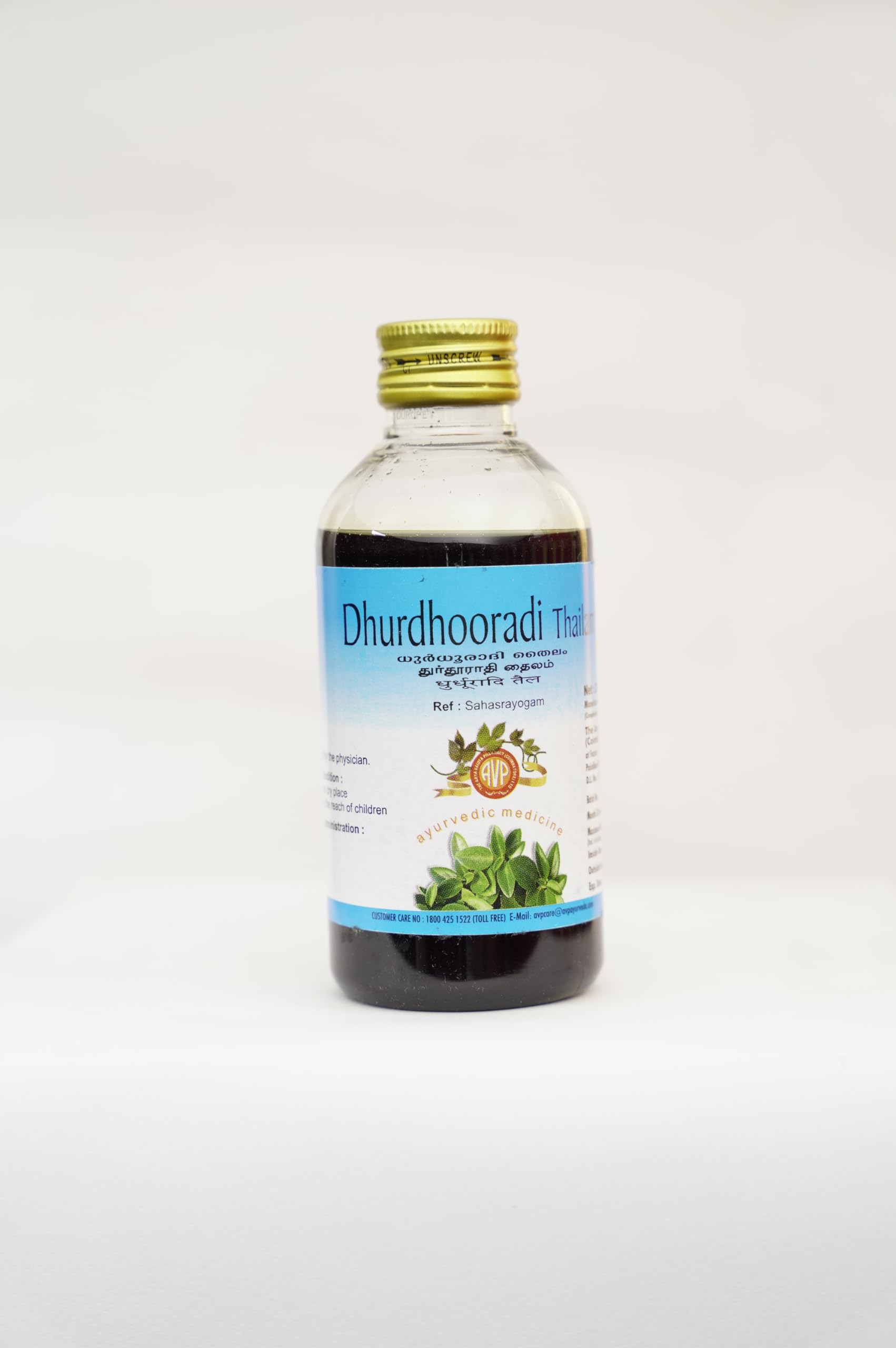 AVP Dhurdhooradi Thailam is a potent Ayurvedic formulation enriched with Datura metel in a nourishing base of sesame oil. This versatile combination makes it an effective formulation for various scalp conditions including dandruff hair fall and other skin diseases.