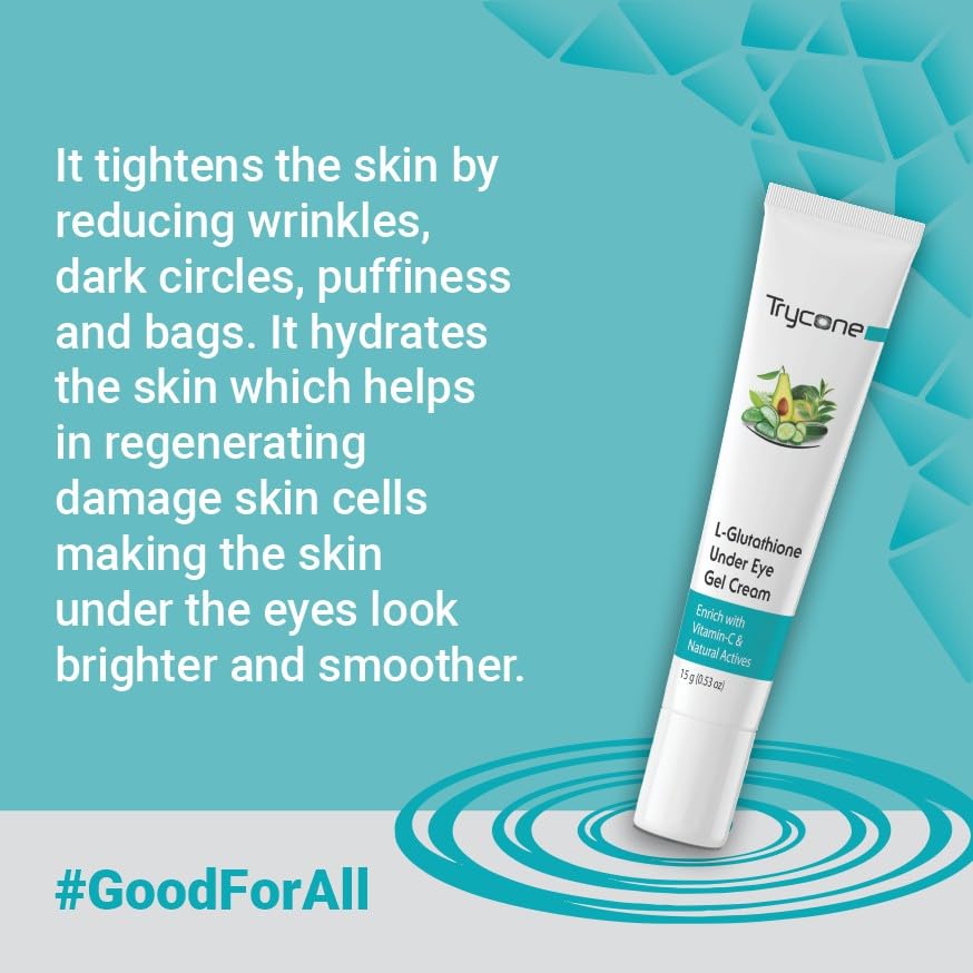 Trycone L- Glutathione and Vitamin C Under Eye Cream Gel for Dark circles Enrich with Natural Actives 15 gm