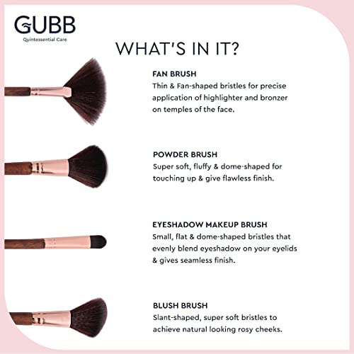 Look flawless with that pretty pop of makeup with luxurious makeup brushes by GUBB USA. Featuring wooden body with fluffy and densely packed synthetic bristles to feel super soft on skin. Presenting all the right makeup brushes in one combo to be your own makeup artist. Get Fan brush Powder brush Eyeshadow brush and Blush brush exclusively. Made for both beginners and professional MUAs use.