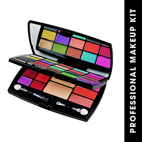 • Includes 20 glamorous eyeshadow shades 6 gy lip colours 3 shades of pigmented and blendable blush and 2 powder pancake to set your makeup for long and a mirror inside the opening lid