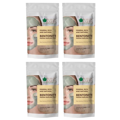 Bliss of Earth 100% Pure Bentonite Clay Powder | 4x100GM | Indian Healing Clay | Natural Detoxifying Healing Facial Mask To Exfoliate and Deep Pore Cleansing | Remove Excessive Oil |