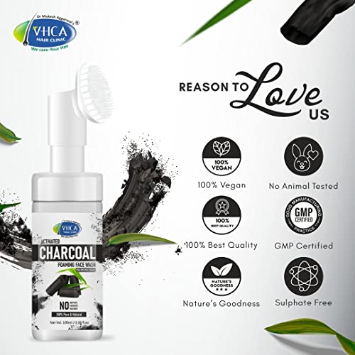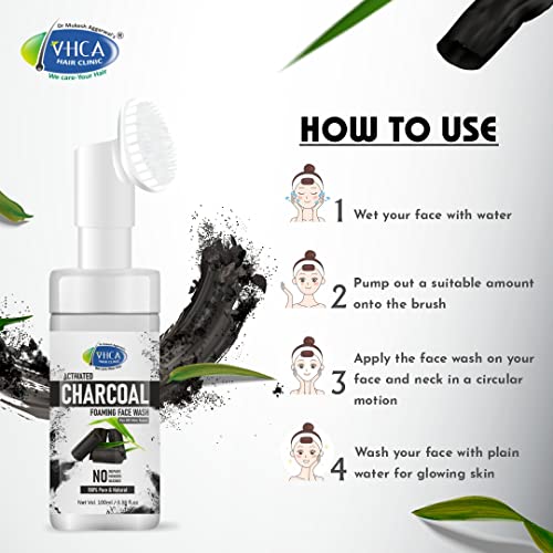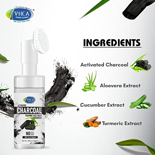 VHCA Activated Foaming Face Wash - For Oily Dry Normal Skin - Paraben Sulfate Silicon Free - For Men Women - 100 ml ( Pack of 1 )