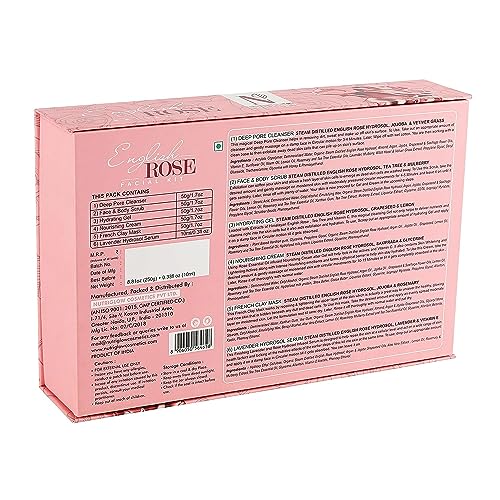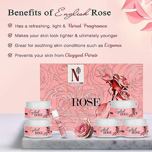 NutriGlow Natural's English Rose Facial Kit For Women With Rose Extracts Best For Reverse Aging Hyper pigmentation Treatment & Dark Spots Removal All Skin Types (8.8 Oz+ 0.3 Fl Oz)