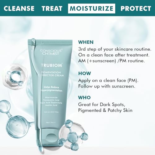 HomeHealth & PersonalSkin CareFace CareMoisturiser & CreamConscious Chemist Kojic Acid Face Cream | 50g | Azelaic Acid Cream, Face Cream for Men & Women, Niacinamide & Tranexamic Acid, Anti Pigmentation Cream, Reduce Dark Spots, All Skin Type - Trubiom