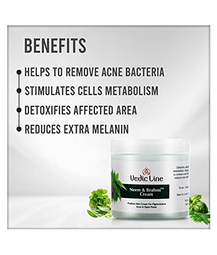 • Vedicline Neem & Brahmi cream controlled Acne and Pigmentation keeps your skin free of blemishes by giving you youthful and shining skin.