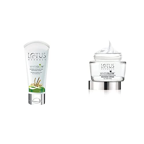 Lotus Herbals White Glow Oatmeal And Yogurt Skin Whitening Scrub 100g And Lotus Herbals Whiteglow Skin Whitening And Brightening Massage Creme 60g