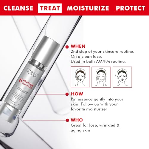 HomeHealth & PersonalSkin CareFace CareSerum & LotionConscious Chemist 6 Peptide Serum for Face | 50ml | Complex Collagen Boosting Firming Essence for Face, Niacinamide & Hyaluronic Face Serum, Reduce Fine Lines, Wrinkles, Face Serum for Men & Women