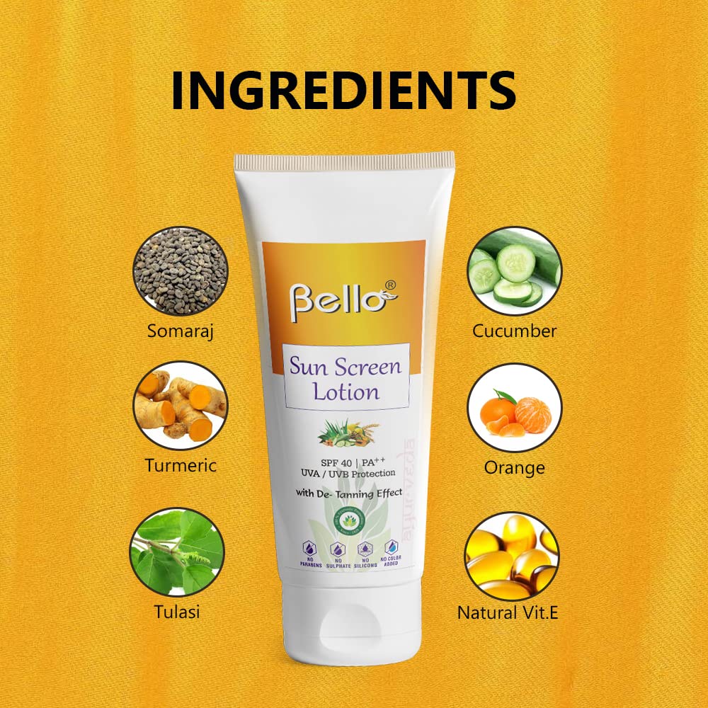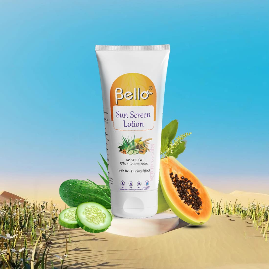 Bello Sunscreen Lotion SPF 50+ 2 in 1 Lotion with Sun protection & De-tanning PA++++ UVA/UVB Broad spectrum protection