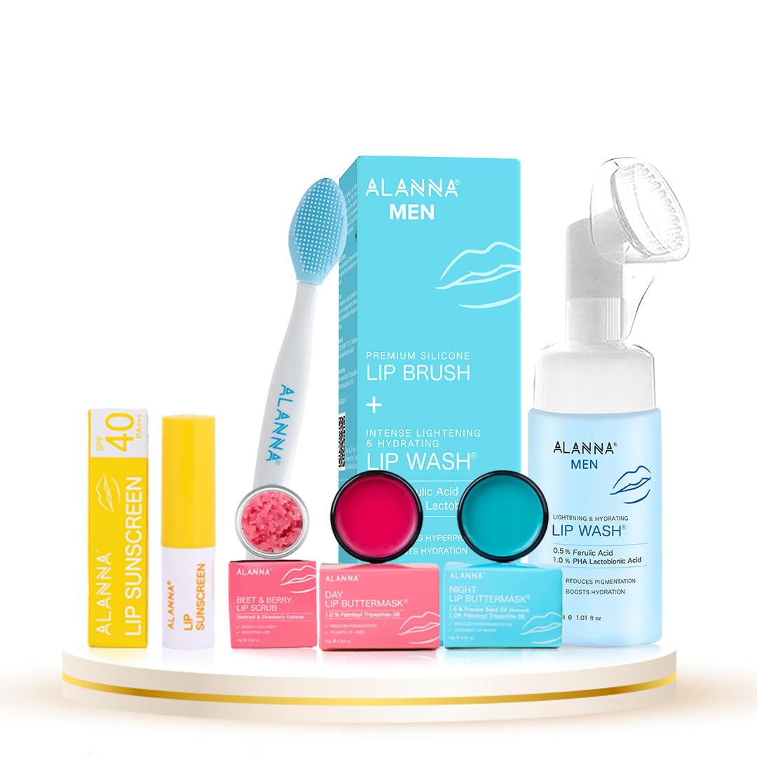 Lip Pigmentation Treatment Kit Achieve even-toned radiant lips with this comprehensive treatment kit. Our anti-acne dark spot lightening lip gloss enriched with SPF 40 PA+++ nourishes hydrates and reduces pigmentation and dark spots. The gentle exfoliating formula brightens and smoothens lips revealing a youthful look. Regular use improves lip tone and texture. Perfect for combating lip discoloration and rejuvenating your pout. Embrace radiant lips with this essential kit.