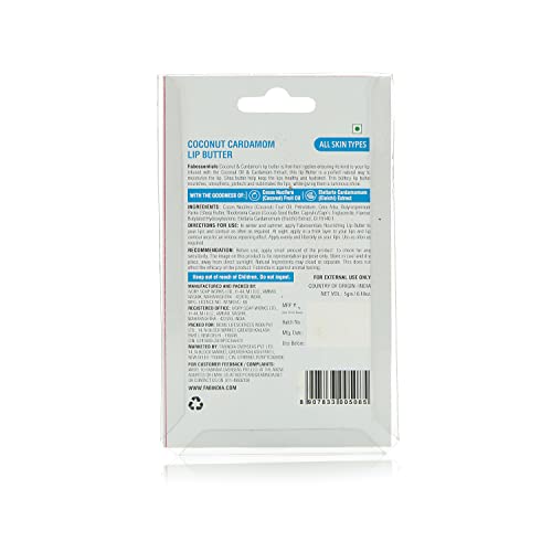 fabessentials Coconut Cardamon Lip Butter | infused with Shea Butter | with 100% Edible Grade Flavour & No Artificial Fragrance | for Instant Light Lip Moisturisation - 5 gm
