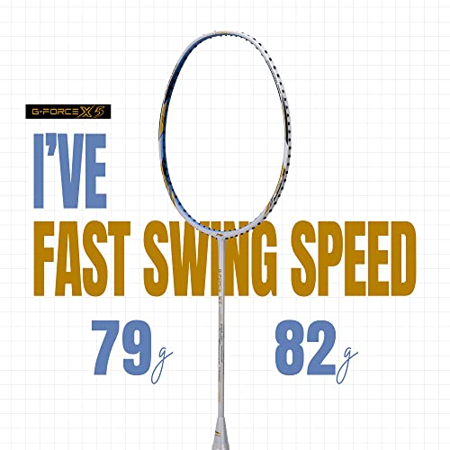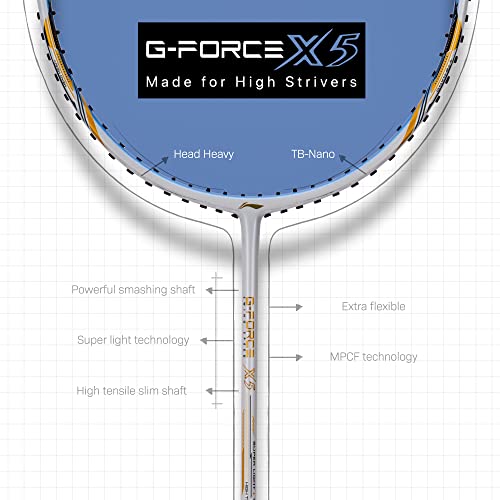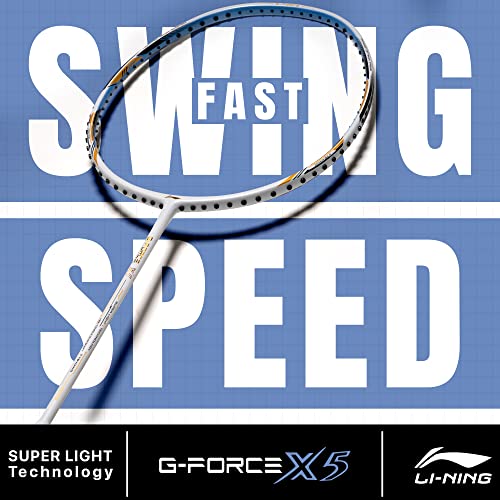 Li-Ning G-Force X5 Carbon Fibre Badminton Racket with Free Full Cover(79 Grams 28 Lbs) (White/Gold/Blue).